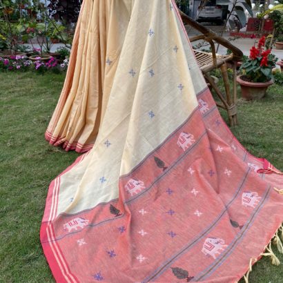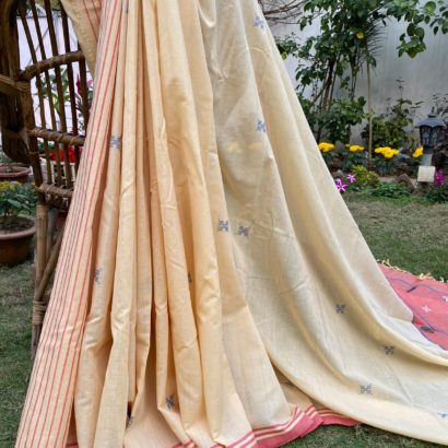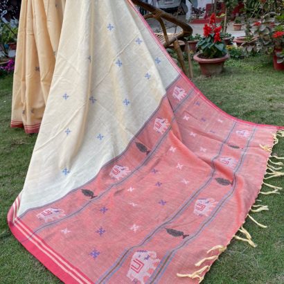 - Pure cotton hand woven saree with 52 extra weft butis.