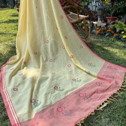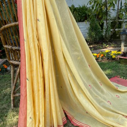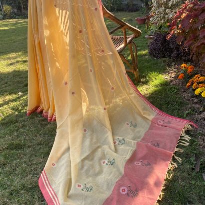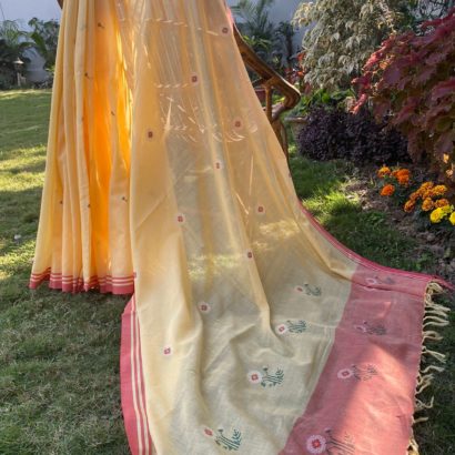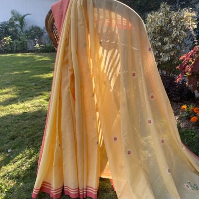 - Pure cotton hand woven saree with 52 extra weft butis.