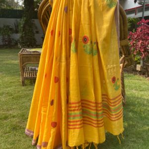 • Pure cotton hand woven saree with 52 extra weft butis.