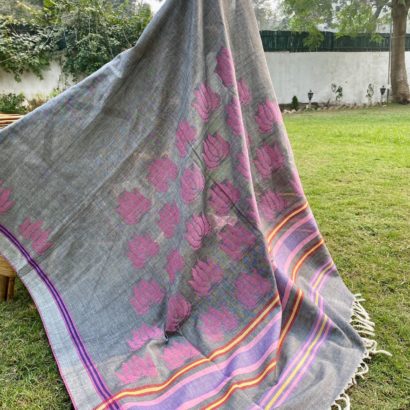 • Pure cotton hand woven saree with 52 extra weft butis.