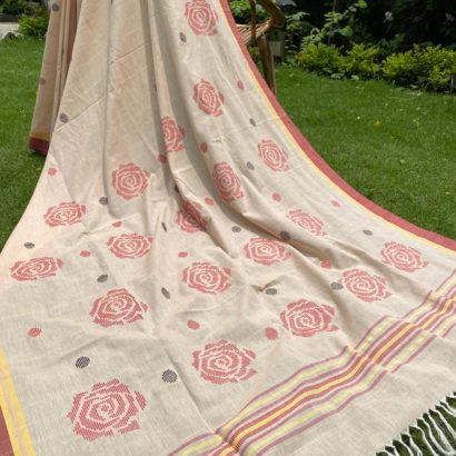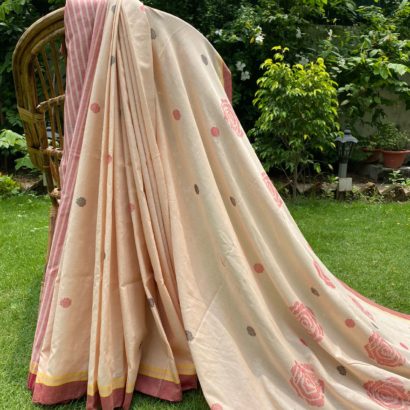 Pure cotton hand woven saree with extra weft butis.