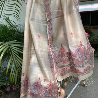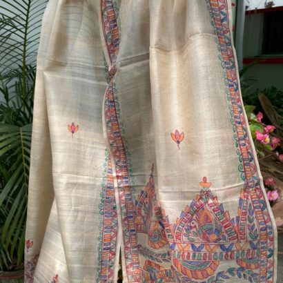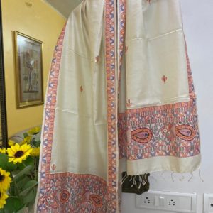 Pure Tusser silk Hand Woven stoles with Madubani hand Painting.